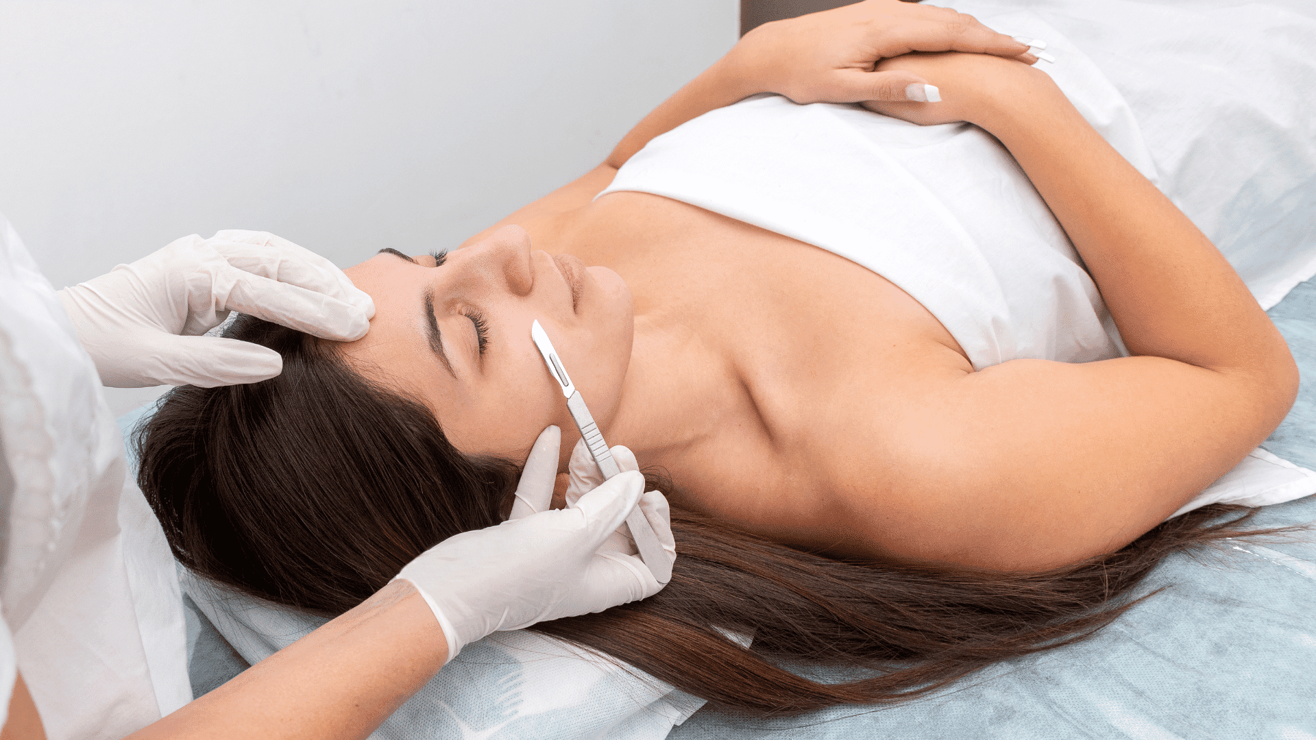 - Thorough cleansing of the skin – Your esthetician gently cleanses your skin to remove dirt, oils, and impurities. This preparation creates a clean surface and allows the blade to glide smoothly across your skin for optimal results.
